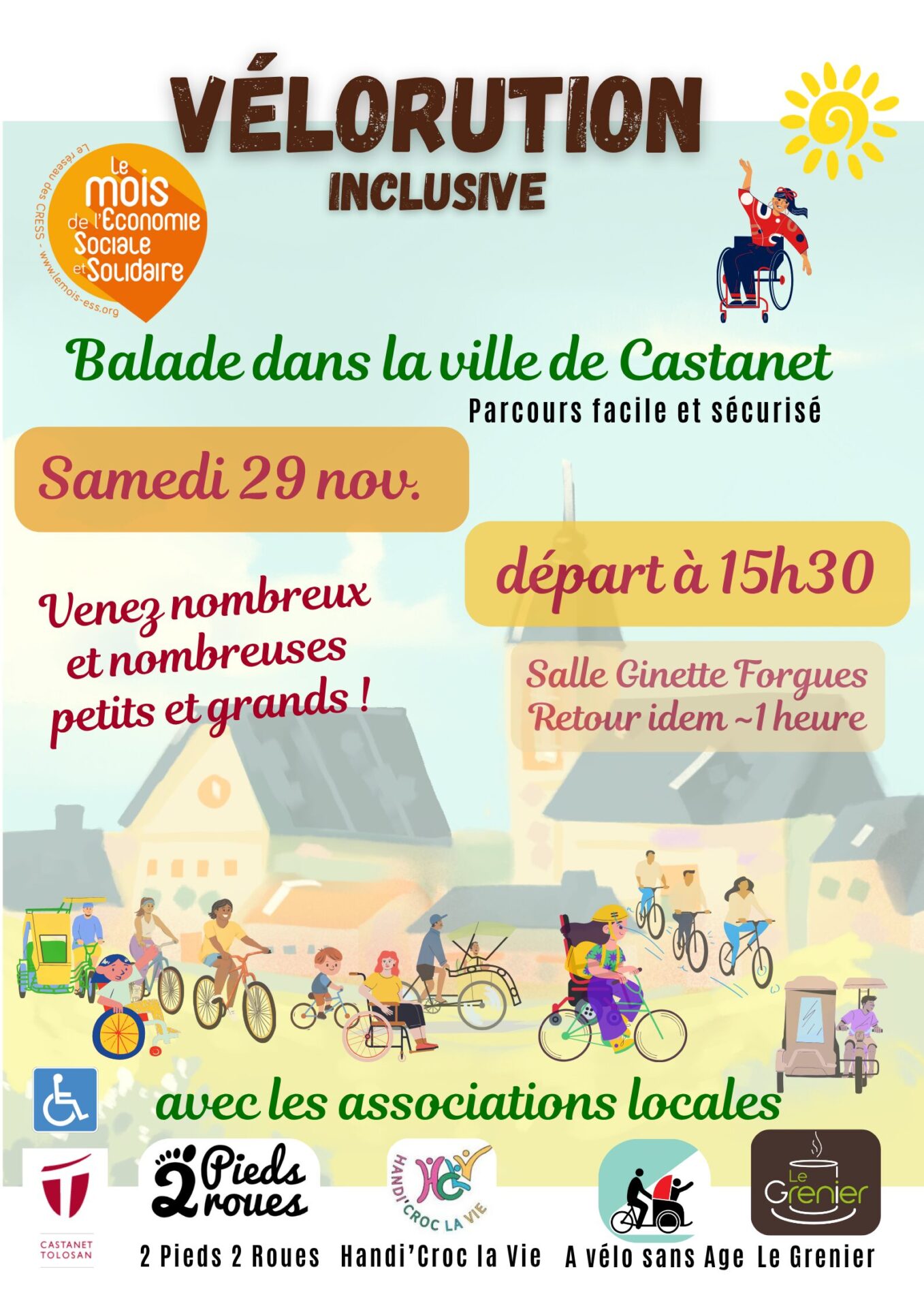 Proposés par Le Grenier, Antenne 2Pieds 2 Roues castanet, A Vélo Sans Age et Handi’Croc la Vie, venez gonfler le troupeau mobile pour une balade dans la ville de Castanet T. sur un parcours sécurisé… proposé par 2P2R l’anneau des écoles !